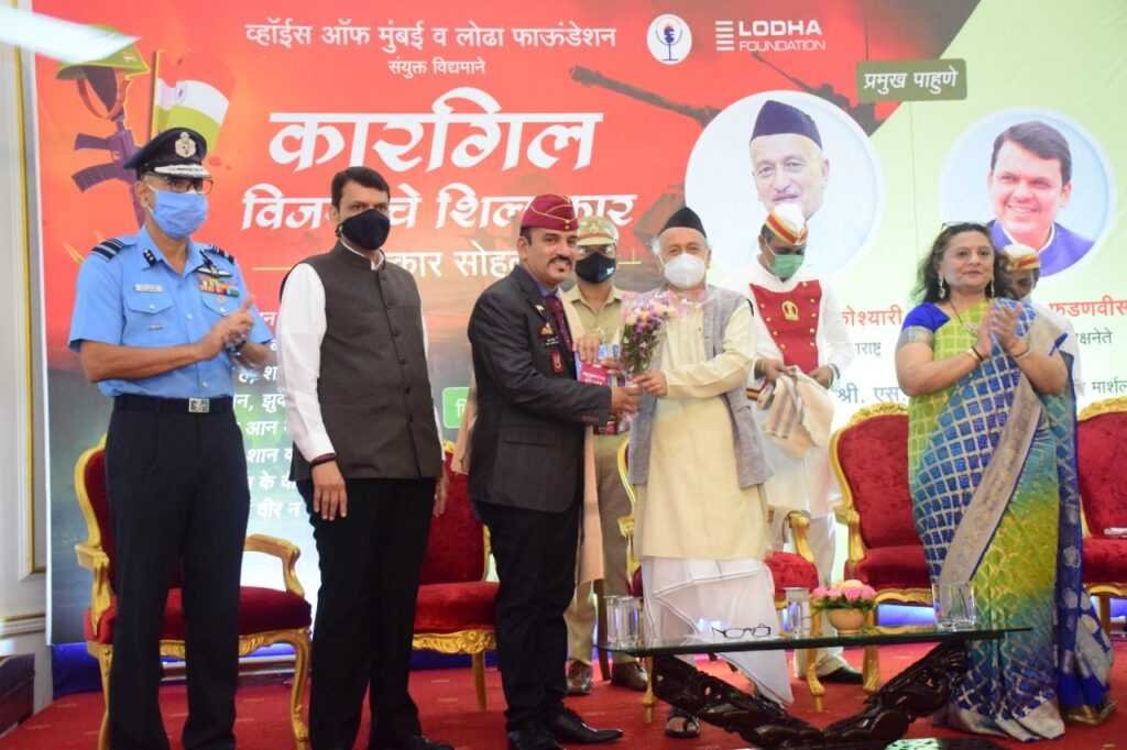 इंडिया विस्तार। मुम्बई की समाजिक संस्था लोढ़ा फाउंडेशन तथा वॉइस ऑफ मुम्बई के संयुक्त तत्वाधान में कारगिल विजय के शिल्पकारों का सत्कार समारोह का आयोजन राजभवन में आयोजित किया गया। इस कार्यक्रम में राज्यपाल भगत सिंह कोश्यारी ने कारगिल विजय के शिल्पकारों तथा सैनिकों का सम्मान किया। इस अवसर पर विधानसभा विरोधी पक्ष नेता माननीय देवेंद्र फड़णवीस संयुक्त रूप से मुख्य अतिथि तथा एयर वाईस मार्शल एस.आर. सिंह, समाजसेविका लेखिका व कवयित्री मंजू मंगलप्रभात लोढ़ा, वॉइस ऑफ मुम्बई की अनुराधा गोरे, स्थानीय विधायक व मुम्बई भाजपा अध्यक्ष मंगलप्रभात लोढ़ा विशेष अतिथि के रूप में उपस्थित थे।