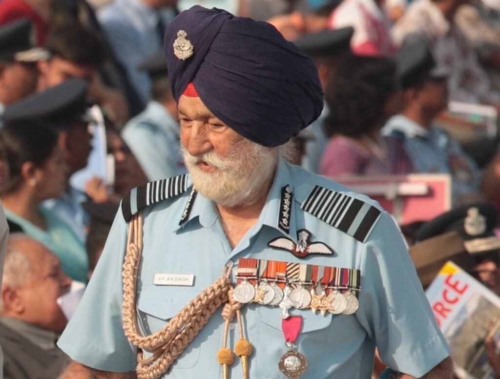 मार्शल ऑफ एयरफोर्स अर्जन सिंह का जन्म 15 अप्रैल, 1919 को लायलपुर (अब पाकिस्तान का फैसलाबाद) में हुआ था। उन्नीस वर्ष की आयु में उन्हें आरएएफ कॉलेज क्रैनवेल में प्रशिक्षण के लिये चुन लिया गया तथा दिसंबर 1939 में उन्हें पायलट ऑफीसर के तौर पर रॉयल एयरफोर्स में कमीशन प्राप्त हुआ। उन्हें द्वितीय विश्वयुद्ध के दौरान बर्मा अभियान में शानदार नेतृत्व, अतीव कौशल और साहस के लिये डिस्टिंग्विइश्ड फ्लाइंग क्रॉस (डीएफसी) से सम्मानित किया गया। जब 15 अगस्त, 1947 को भारत स्वतंत्र हुआ, तो उन्हें दिल्ली में लाल किले के ऊपर से एक-सौ से अधिक हवाई जहाजों की उड़ान-परेड का नेतृत्व करने का अनोखा सम्मान दिया गया। एक अगस्त, 1964 को अर्जन सिंह ने 44 वर्ष की आयु में एयर मार्शल के पद के साथ वायुसेना प्रमुख का कार्यभार संभाला।