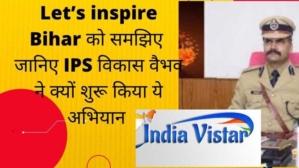 नई दिल्ली। “Let’s Inspire Bihar !” एक ऐसा अभियान जो युवाओं के बीच चर्चा का विषय बना हुआ है। एक ऐसा अभियान जो बिहार के गौरवशाली अतीत के माध्यम से युवाओं में छा रही उदासीनता, हताशा और व्याकुलता को हराने की कोशिश हो रही है। एक ऐसा अभियान जो इंजीनियरिंग की शिक्षा, पेशे से आईपीएस और स्वभाव से इतिहास के प्रेमी विकास वैभव ने बहुत बड़े मकसद के साथ शुरू की है। ऐसा अभियान जिसमें बड़ी संख्या में अप्रवासी बिहारी भी जुड़ रहे हैं।