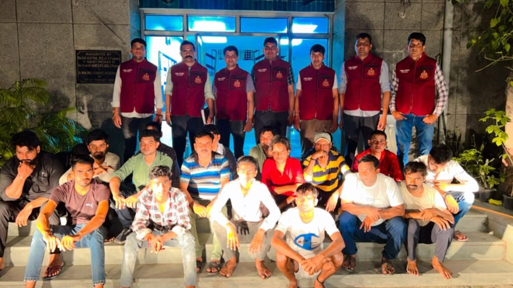 क्राइम ब्रांच के डीसीपी विचित्र वीर सिंह के मुताबिक गिरफ्तार लोगों की पहचान विष्णु, निखिल शर्मा, राकेश, ओम प्रकाश, इरफान, पवनसुन,शकील, राजू महतो, आसिफ, सलीम, विष्णु, रवि कुमार, आकाश, गौरव सिंह, विशाल, मनोज कुमार, अमित और राजेश के रूप में हुई है। यह सभी फन राउलेट गेम से जुआ खेल रहे थे। पुलिस ने जब छापा मारा उस समय 14 कंप्यूटरों पर दो वाई फाई की मदद से ऑनलाइन गैम्बलिंग चल रही थी। ऑनलाइन गैम्बलिंग गैंग के इस रैकेट का पर्दाफाश एसीपी अनिल शर्मा की देखरेख और इंस्पेक्टर अजय कुमार के नेतृत्व में एसआई मनीष कुमार, एएसआई अशोक, किरोरी, बालकिशन, मनोज, रमेश राणा, हेडकांस्टेबल कपिल, राजवीर, नीतिन, राज आर्यन और कर्मजीत की टीम ने किया।